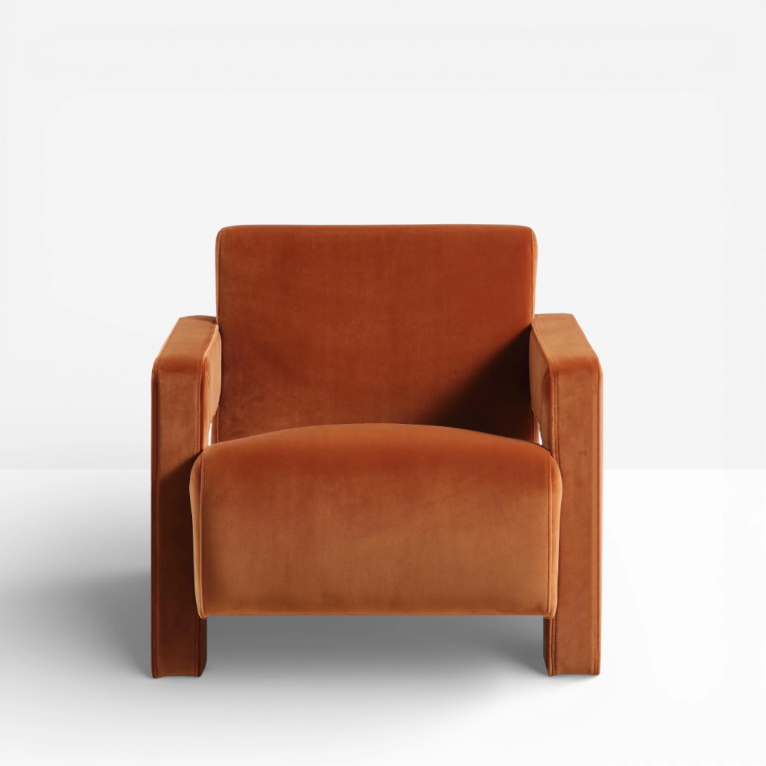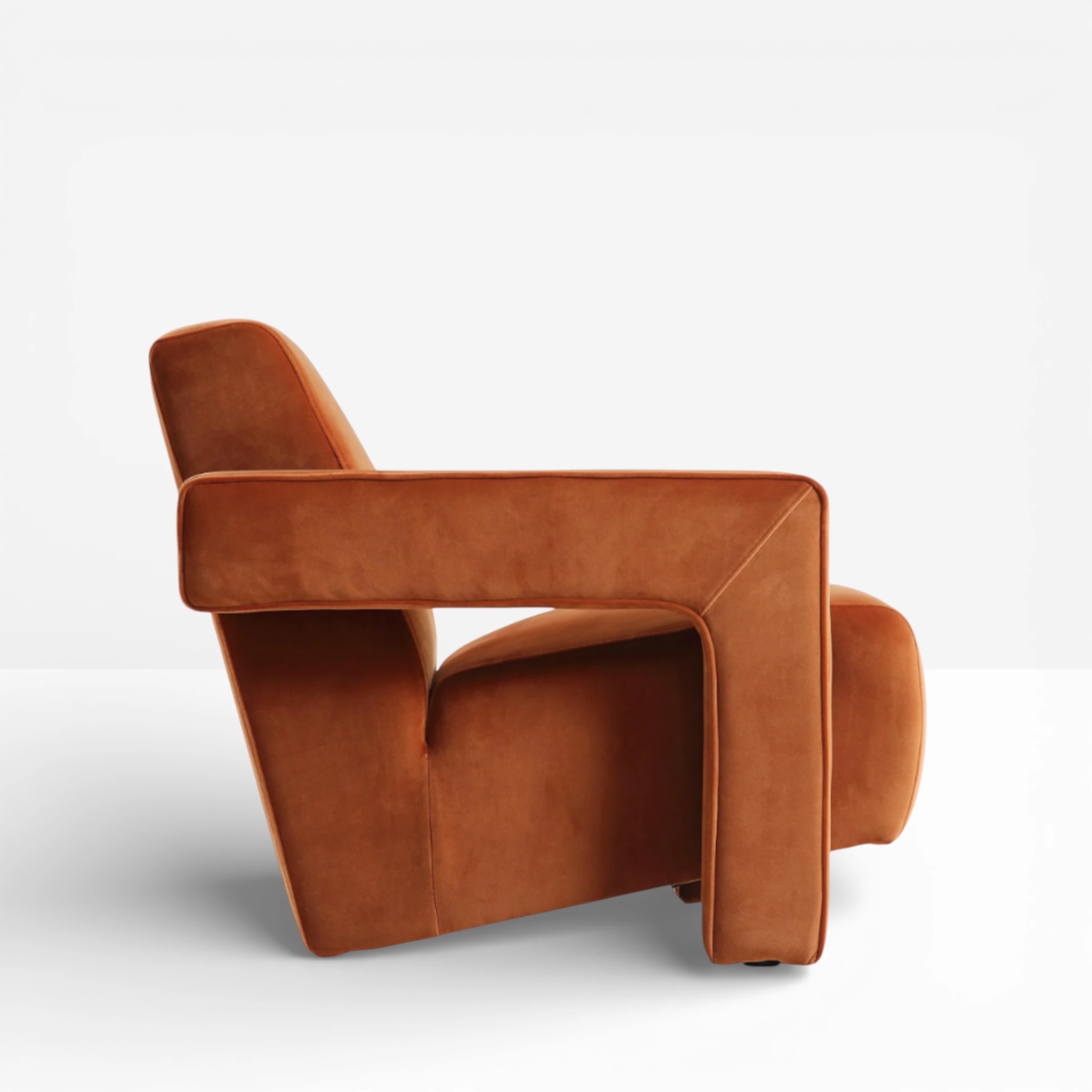 With a bold geometric design, the Ardea Armchair is upholstered in a deep velvet rust fabric making it both soft and modern. Can be used as an accent chair combined with our other soft seating options or as a lounge chair for event spaces.