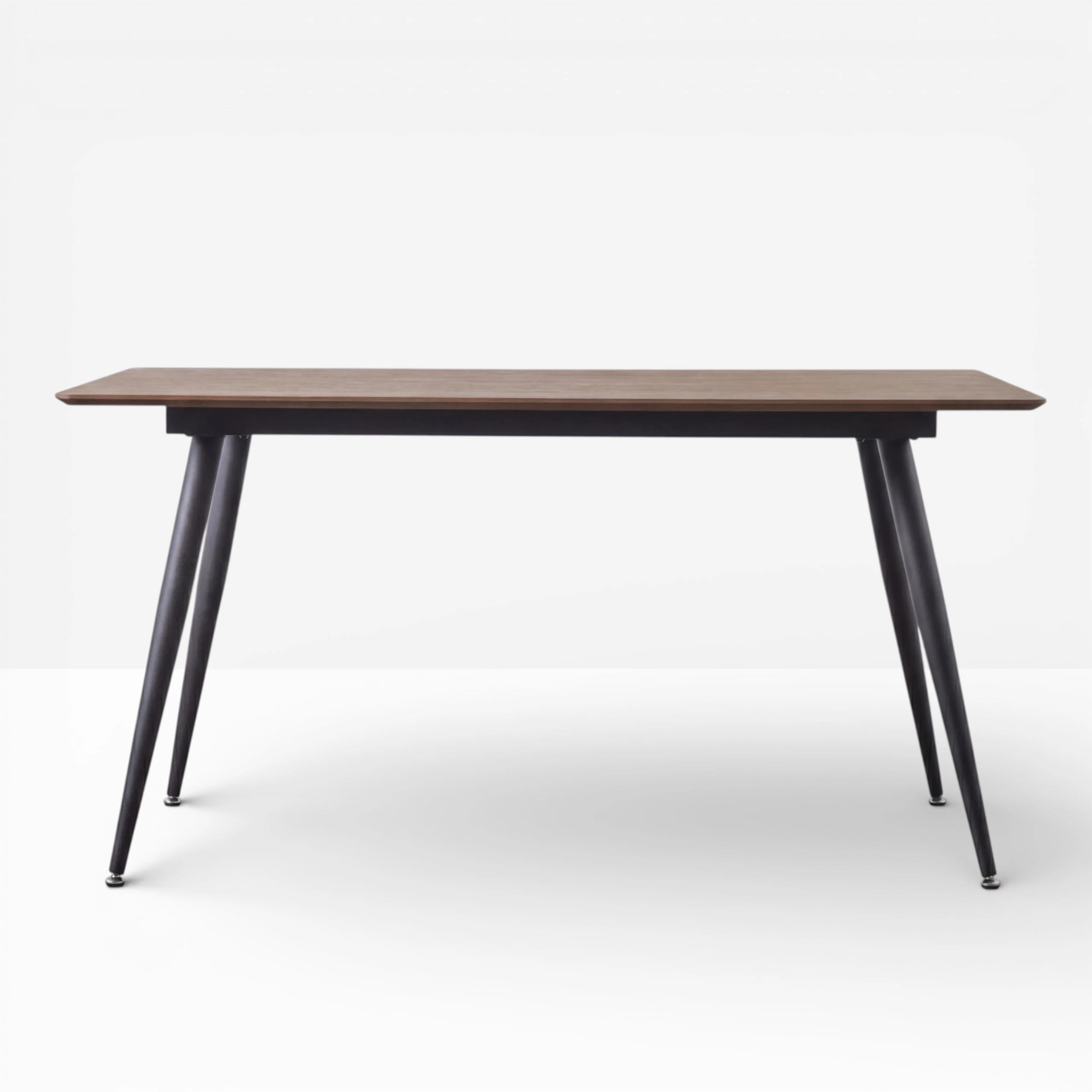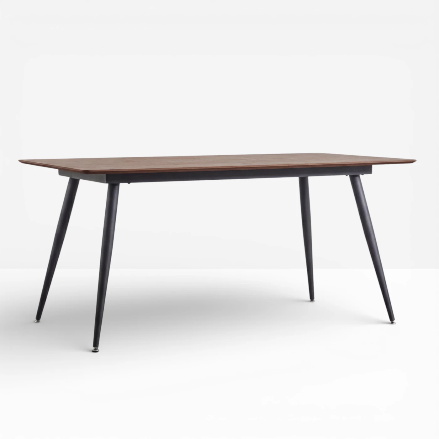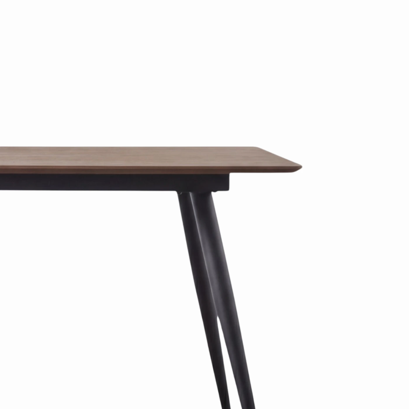 The Aslo is a sleek, contemporary dining table with a Walnut Oak Veneer top and angled black metal legs. Ideal for use as a dining table or stylish meeting table.