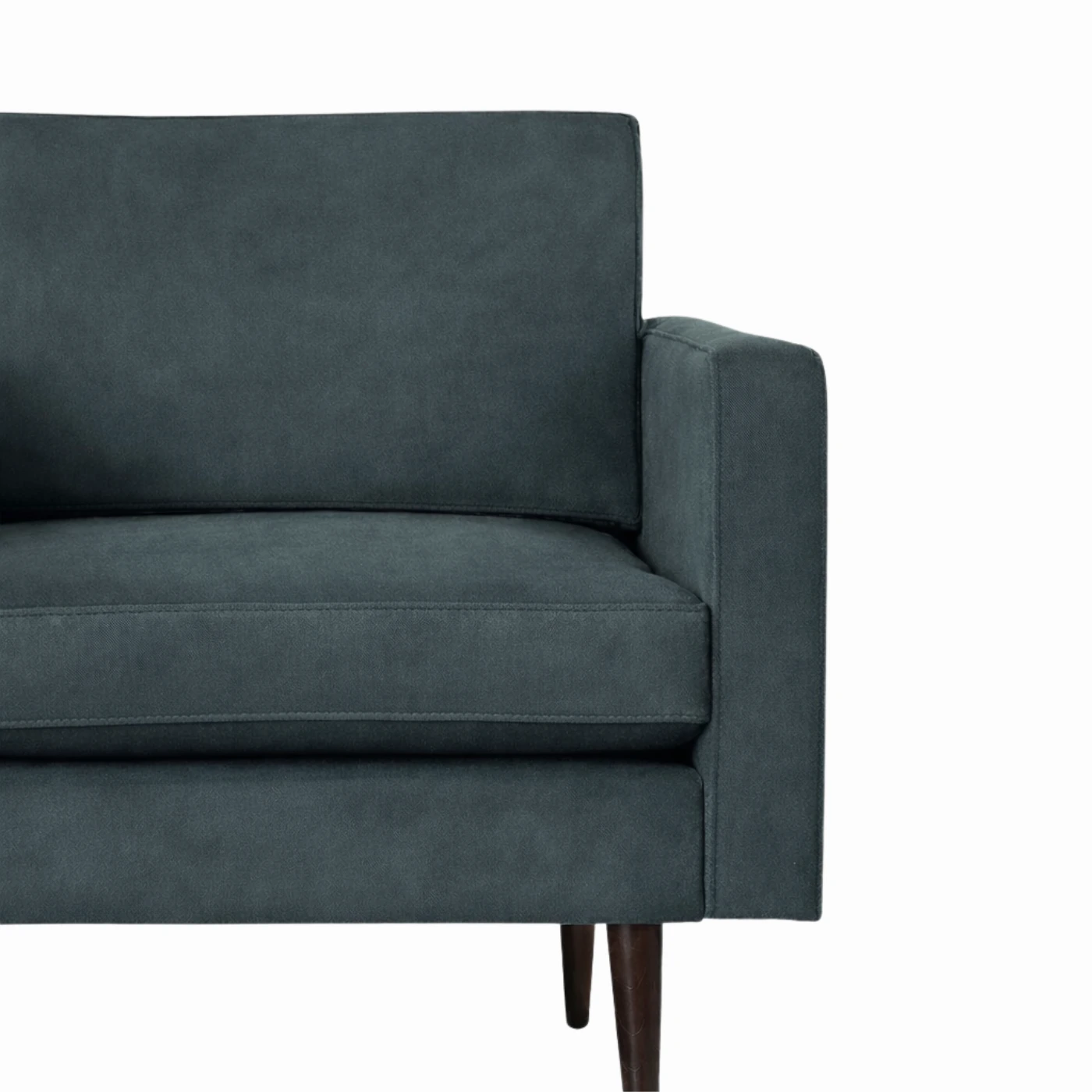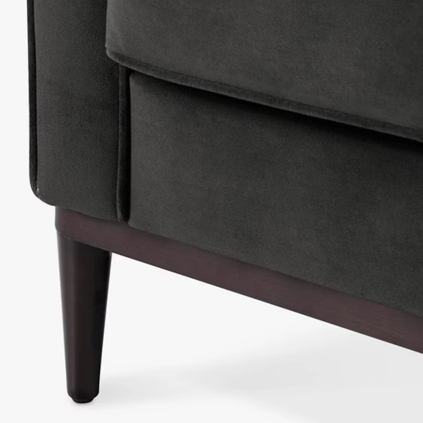 The Aurora sofa is a comfortable, classic and modern sofa. Upholstered in a Velvet Charcoal and built with a high-density dual-layered foam for soft cushioning, the Aurora can seat 2 people comfortably.