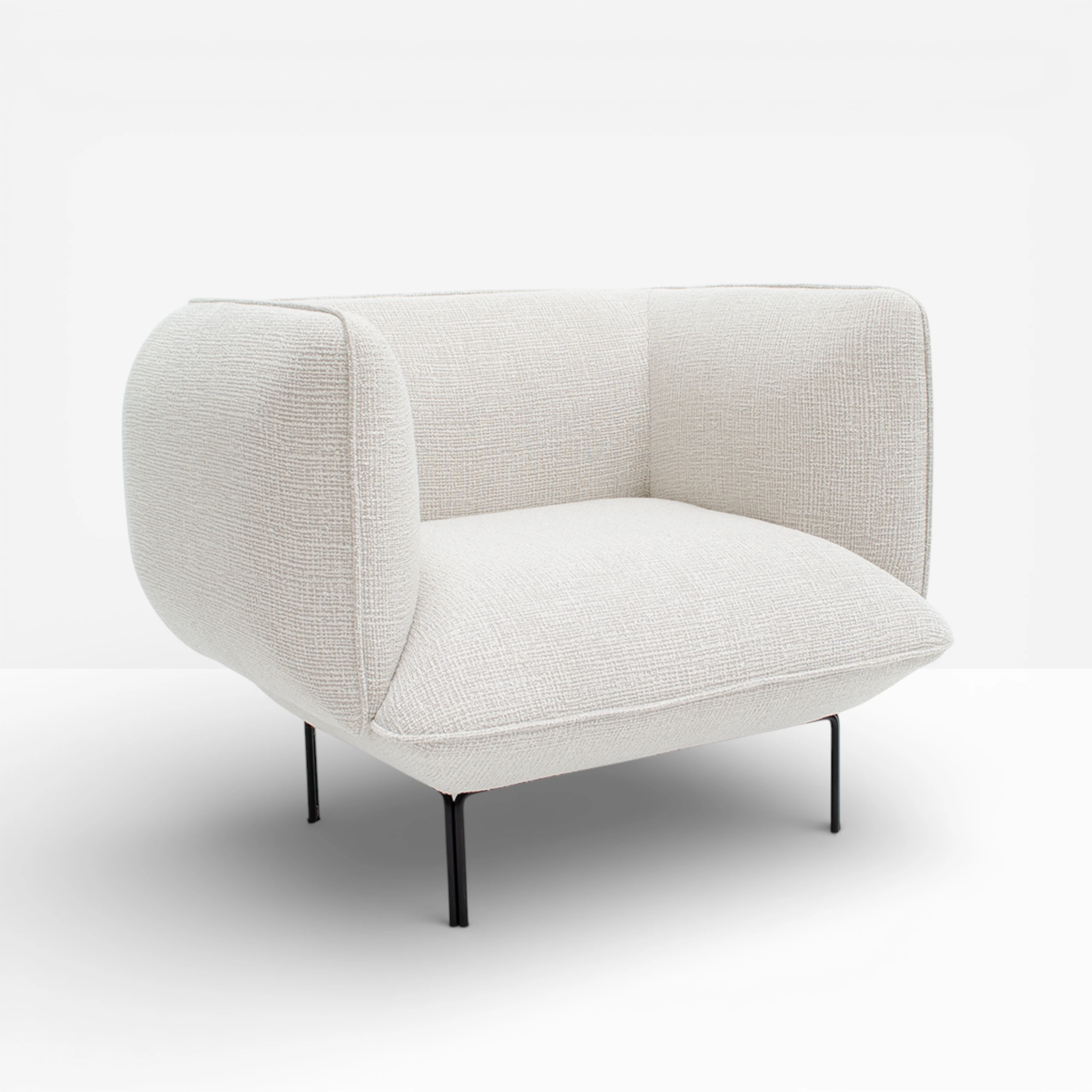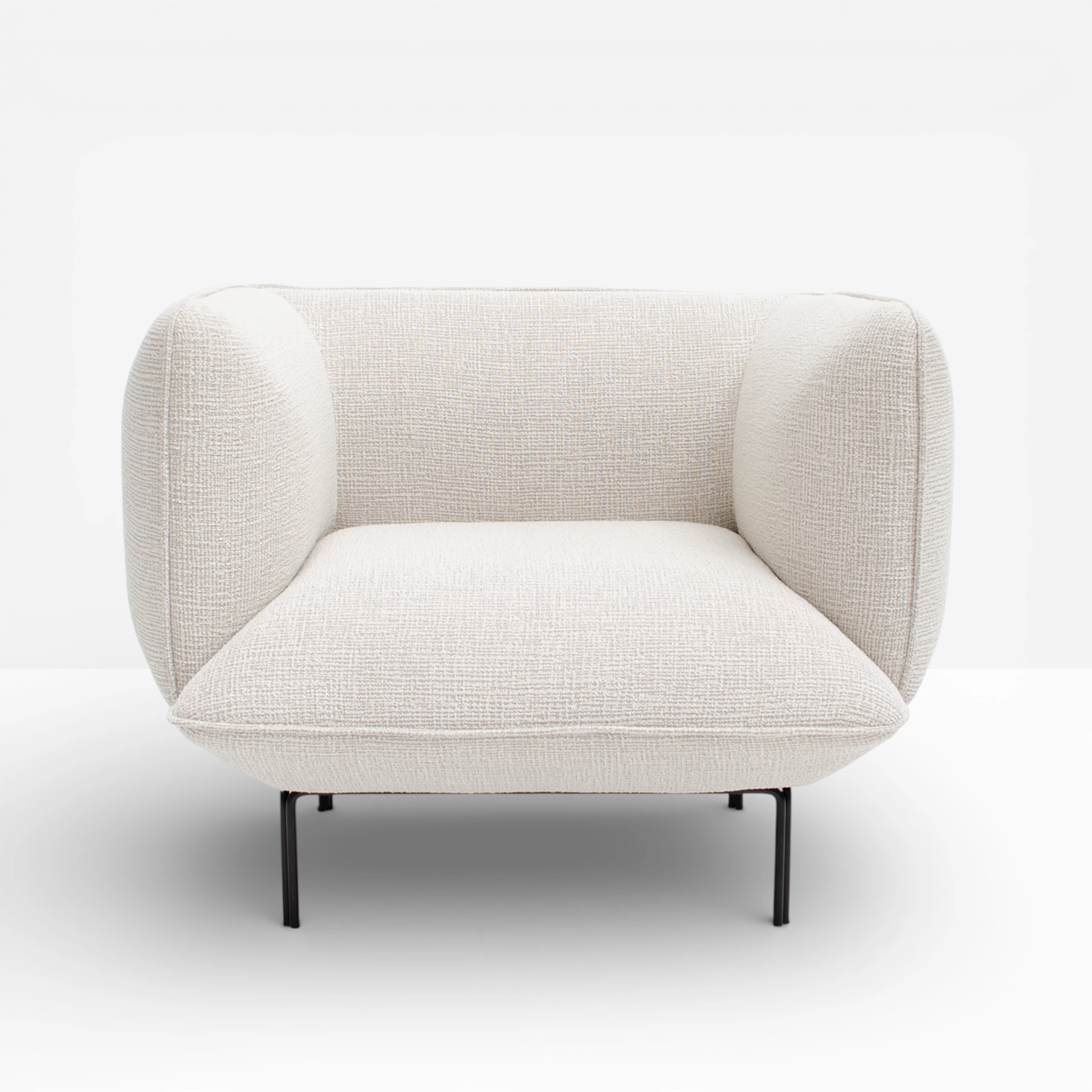 Part of our Cloud range by Yonoh Creative Studio, the Cream Bouclé Cloud Armchair is comfortable, simple and robust. Its floating design gives Cloud a minimalistic and contrasting expression, without compromising on comfort. Covered in 45% Recycled Post-Consumer Polyester.