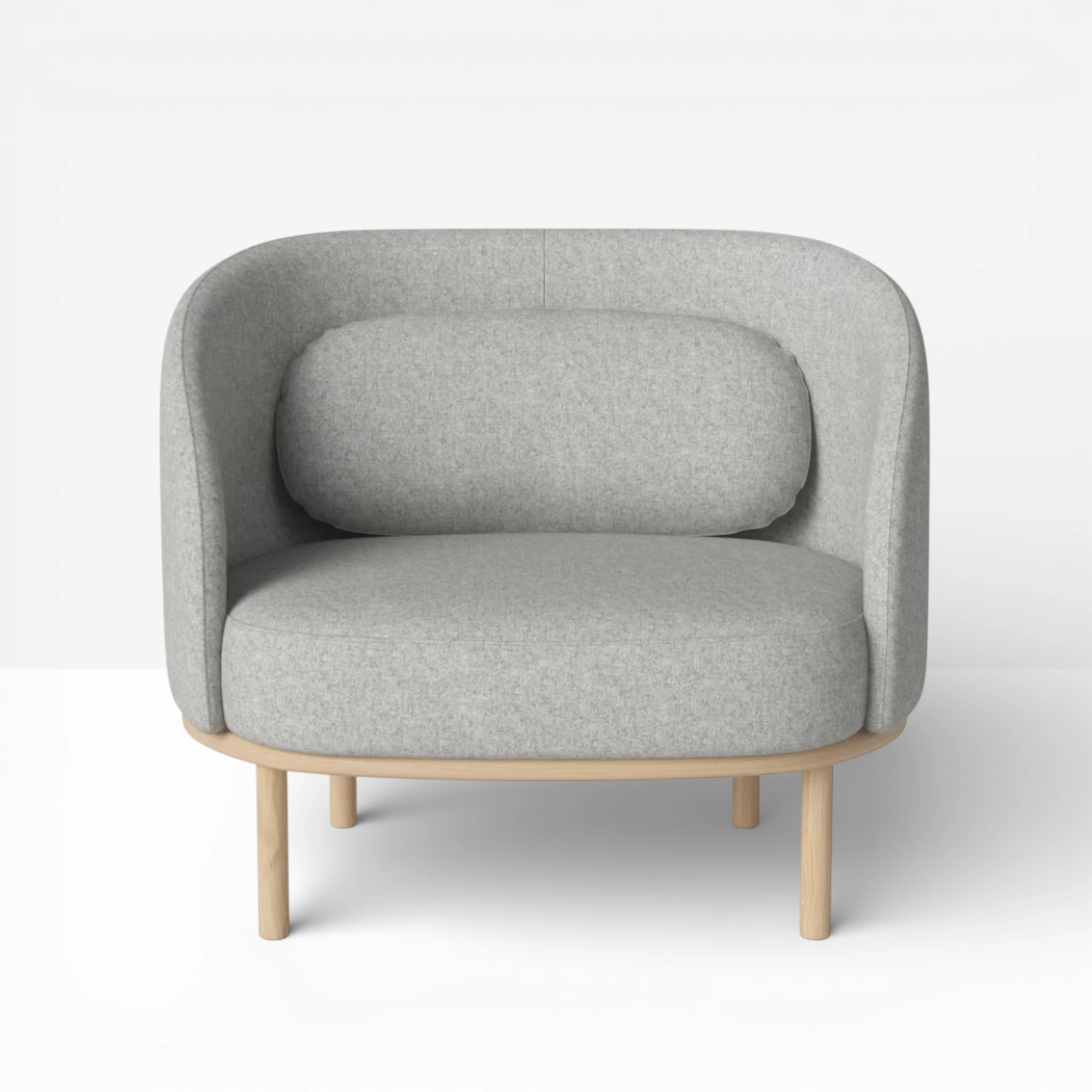 Simple and elegant, with a curvaceous organic form, the Fuuga Armchair is the perfect piece for your lounge space. Designed with comfort in mind, it has low sloping armrests, a padded seat and a supportive backrest. Crafted from solid FSC-Certified oak and covered with a 100% natural wool fabric matching the fabric from our Cloud range.