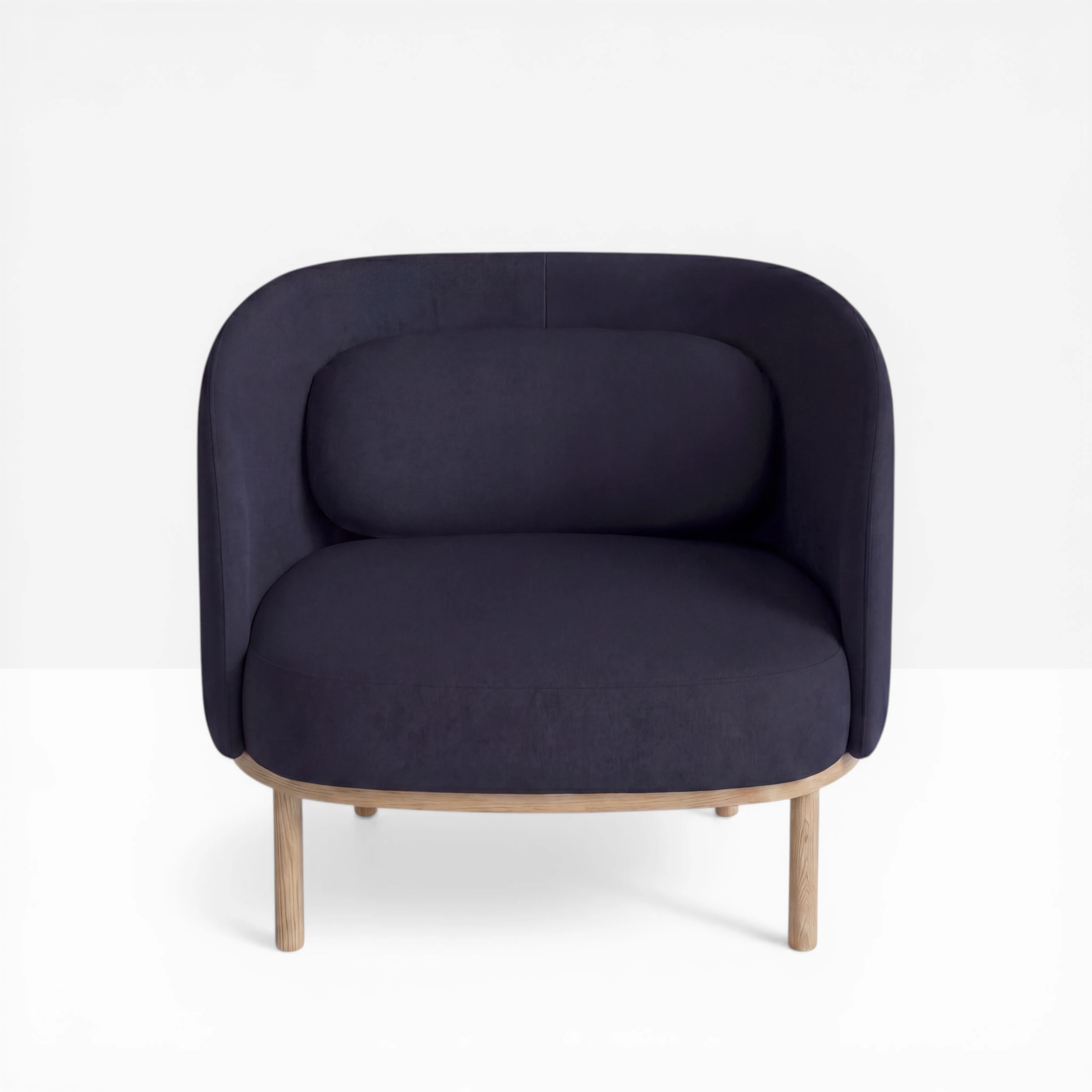 Simple and elegant, with a curvaceous organic form, the Fuuga Armchair is the perfect piece for your lounge space. Designed with comfort in mind, it has low sloping armrests, a padded seat and a supportive backrest. Crafted from solid FSC-Certified oak and covered with a 100% natural wool fabric matching the fabric from our Cloud range.
