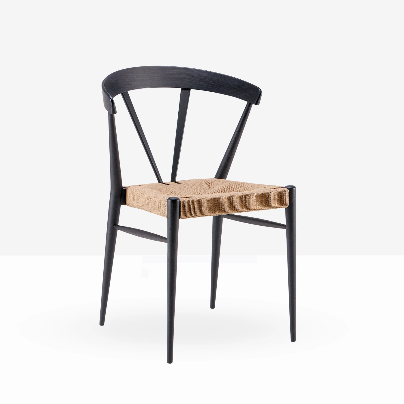 The Grazia black dining chair with natural paper cord seat is elegant and contemporary, with a beautiful feature seat and black stained Beech wood finish. Made from 100% FSC-certified Beech wood with woven paper cord, the Grazia is the perfect chair for an event meeting table, dining table or in higher quantities at a product launch or conference event.