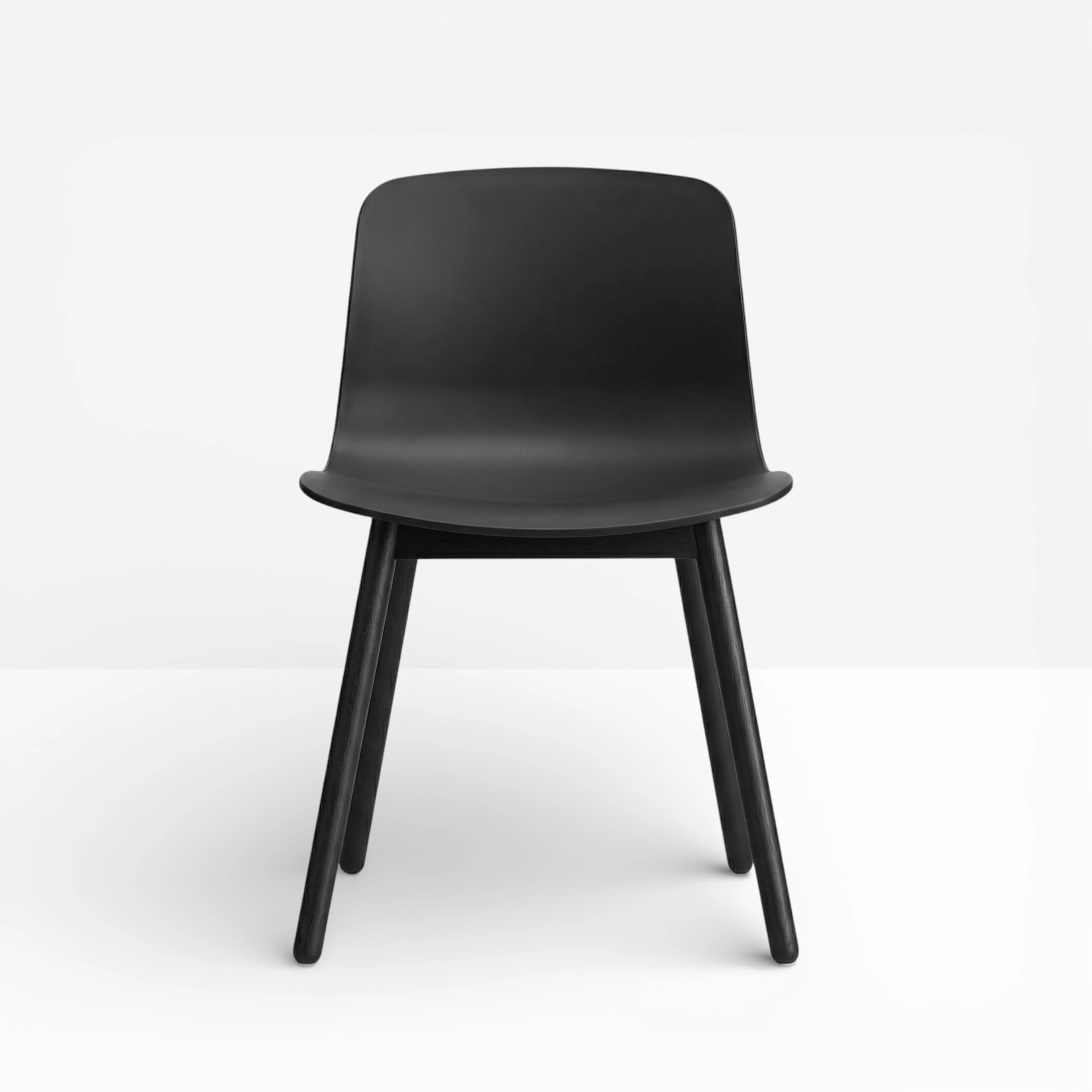 Available with oak legs, black sled legs and with a black shell.