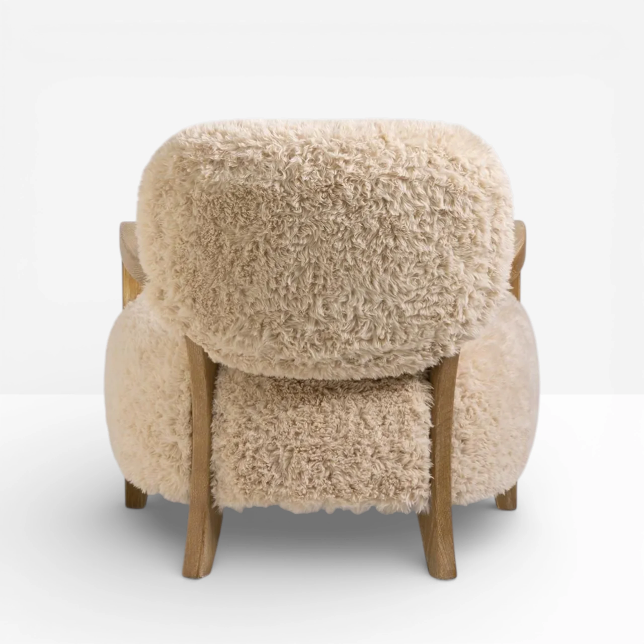 The Serena armchair is a stylish and inviting accent chair, ideal for lounges, breakout areas, and relaxed event spaces. Upholstered in a soft faux sheepskin with solid oak frame, the Serena features a deep cushioned seat and supportive backrest for comfort and contemporary appeal.