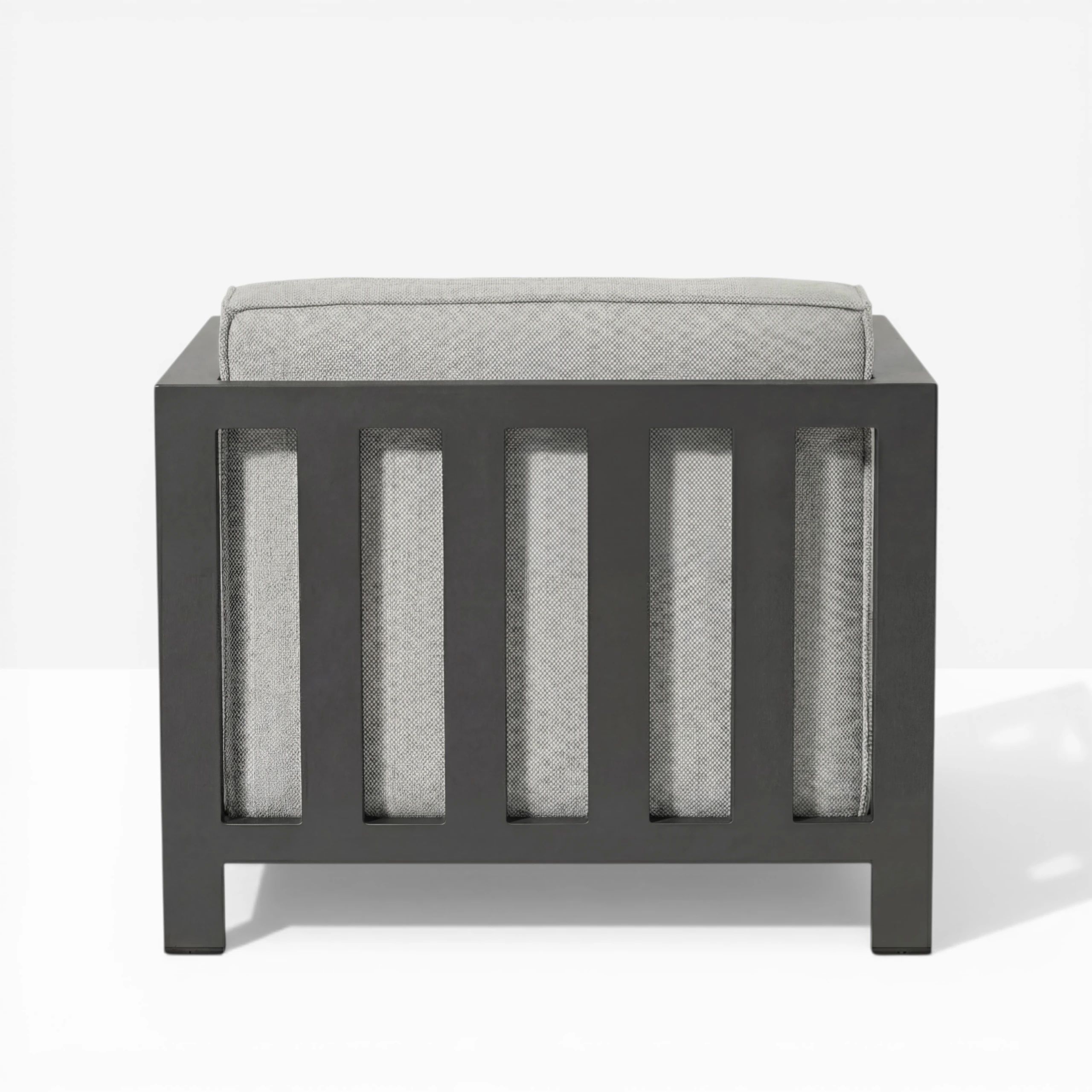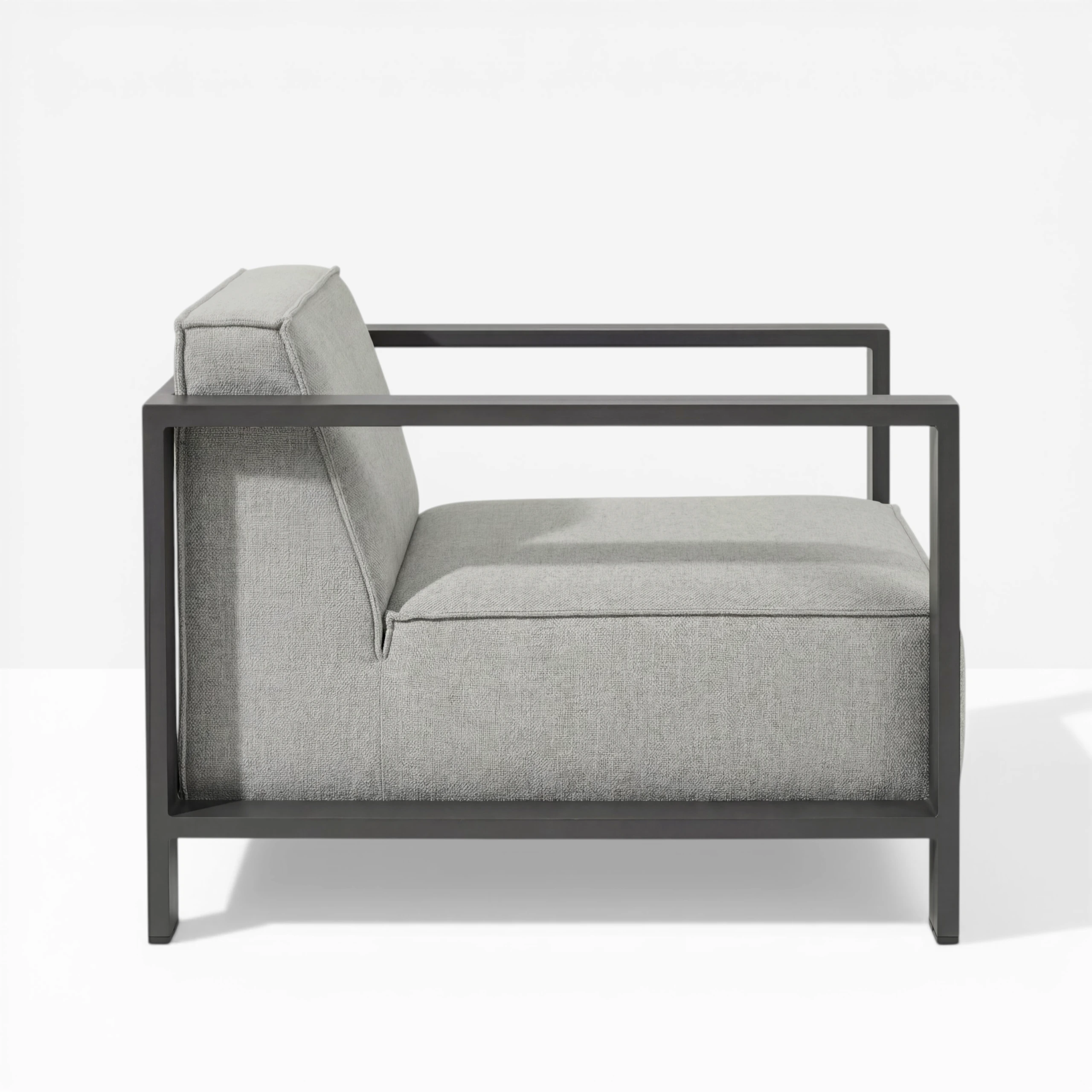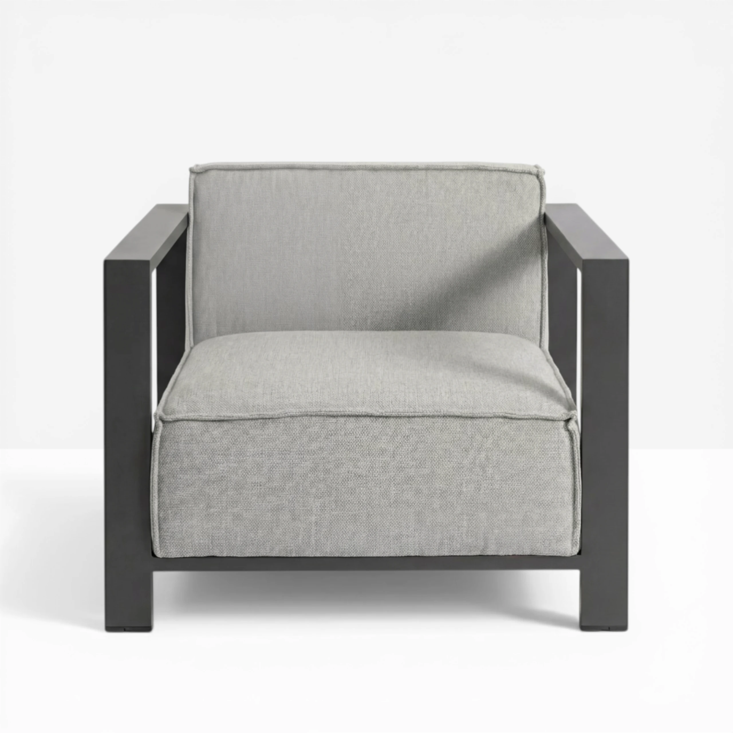 This armchair is part of our stylish Syros outdoor collection. Featuring clean lines, plush cushioning, and a contemporary silhouette, it’s crafted in durable, all-weather fabric in a grey tone with a sleek aluminium frame.